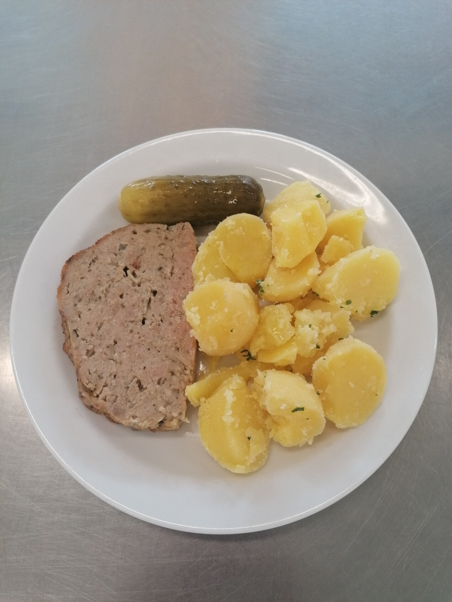 Domácí sekaná, vařený brambor
