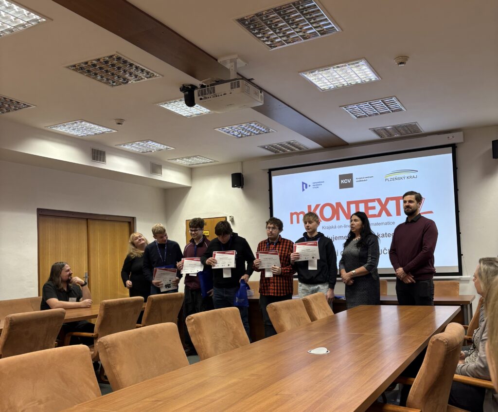 Ve čtvrtek 8. ledna 2026 proběhl finálový den krajské on-line soutěže v matematice mKontext v budově Fakulty strojní Západočeské univerzity v Plzni, který je skvělou příležitostí pro seznámení se s univerzitou. Akce se zúčastnili žáci ze třídy IE1, kde převzali ceny a zúčastnili se připravené exkurze v prostorách ZČU.